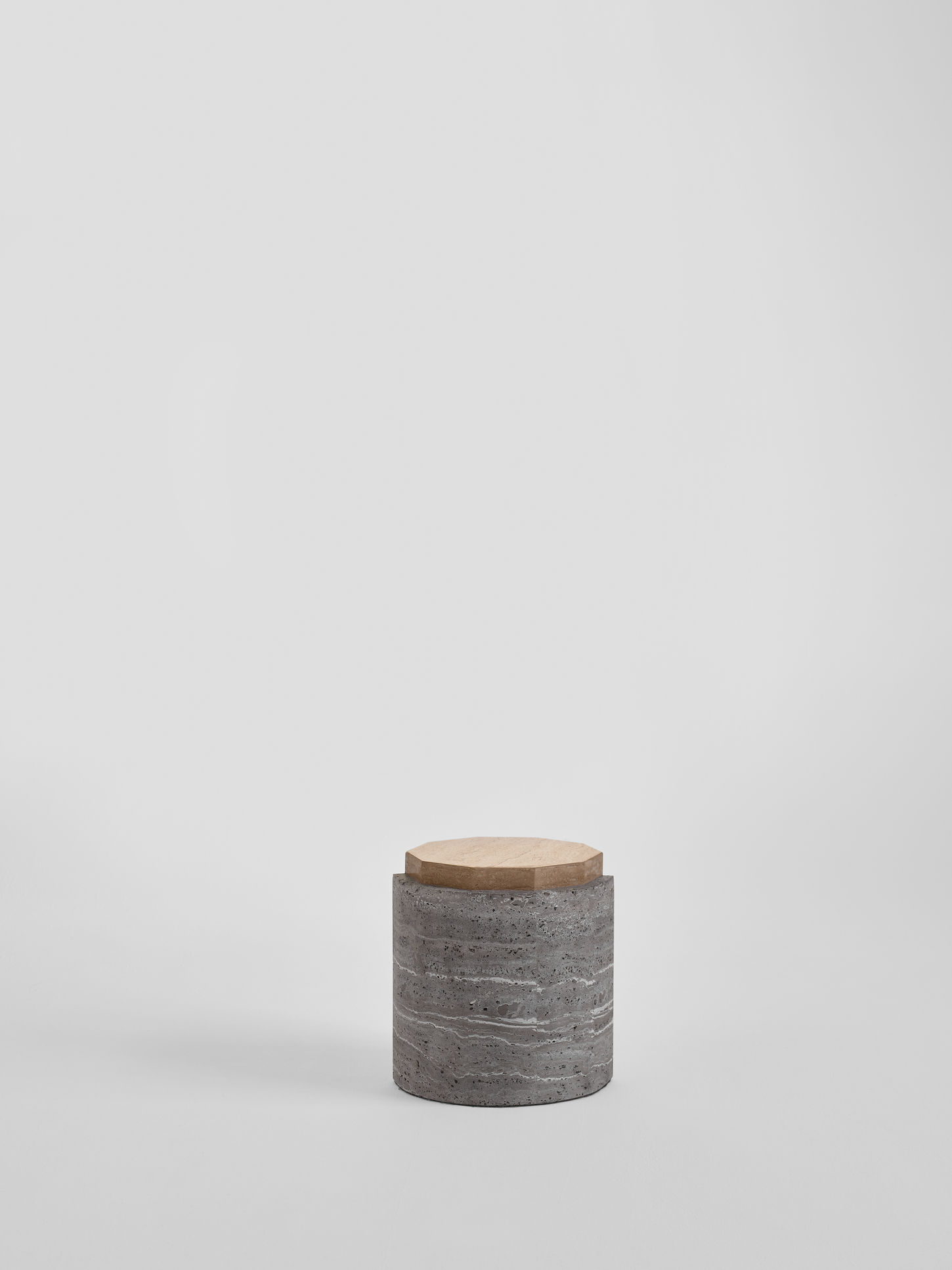 Кофейный столик, выполненный из двух видов травертина. Полировка основания матовая, полировка основного столика глянцевая.
